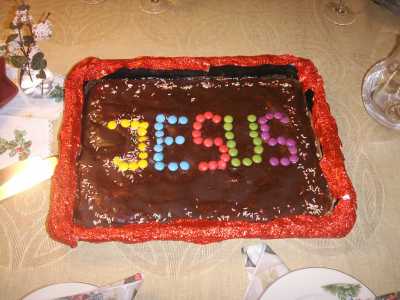 | Zu Weihnachten haben meine Nichte und mein Neffe ihre Oma, also meine Mutter, gefragt warum wir am 24. Dezember immer den Geburtstag von Jesus Christus feiern, aber es nie eine Torte gibt!?