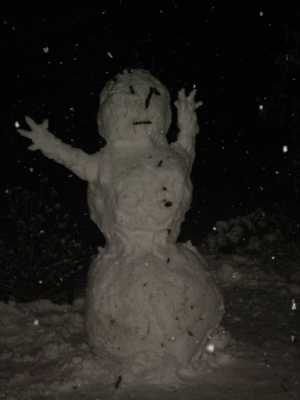 Also habe ich etwas dagegen unternommen und zusammen mit Kristine einen Schneemann gebaut, der auch über eigene Hände verfügte. Er lebte aufgrund statischer Fehler beim Bau ca. 30 min, dann stürzte er leider um! TIPP 4: Beim Schneemannbauen muss man immer darauf achten, dass der Schnee hart geklopft ist!!! Fürs Foto hat unser Schneemann gerreicht ;) |